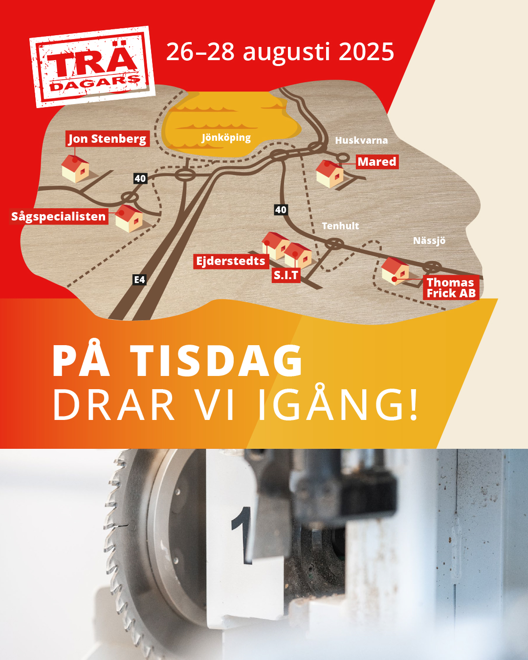 Trädagars är en inspirerande mötesplats för dig som vill se och uppleva ett stort utbud av nyheter, innovationer och inte minst maskiner i full drift. På sex platser inom fyra mil i Jönköpingsregionen möter du representanter och personal från arrangörer, utställare och maskintillverkare som provkör och visar sina lösningars fulla potential. Välkommen till en mässa fylld av affärsmöjligheter, nätverkande och utbyten av idéer.
